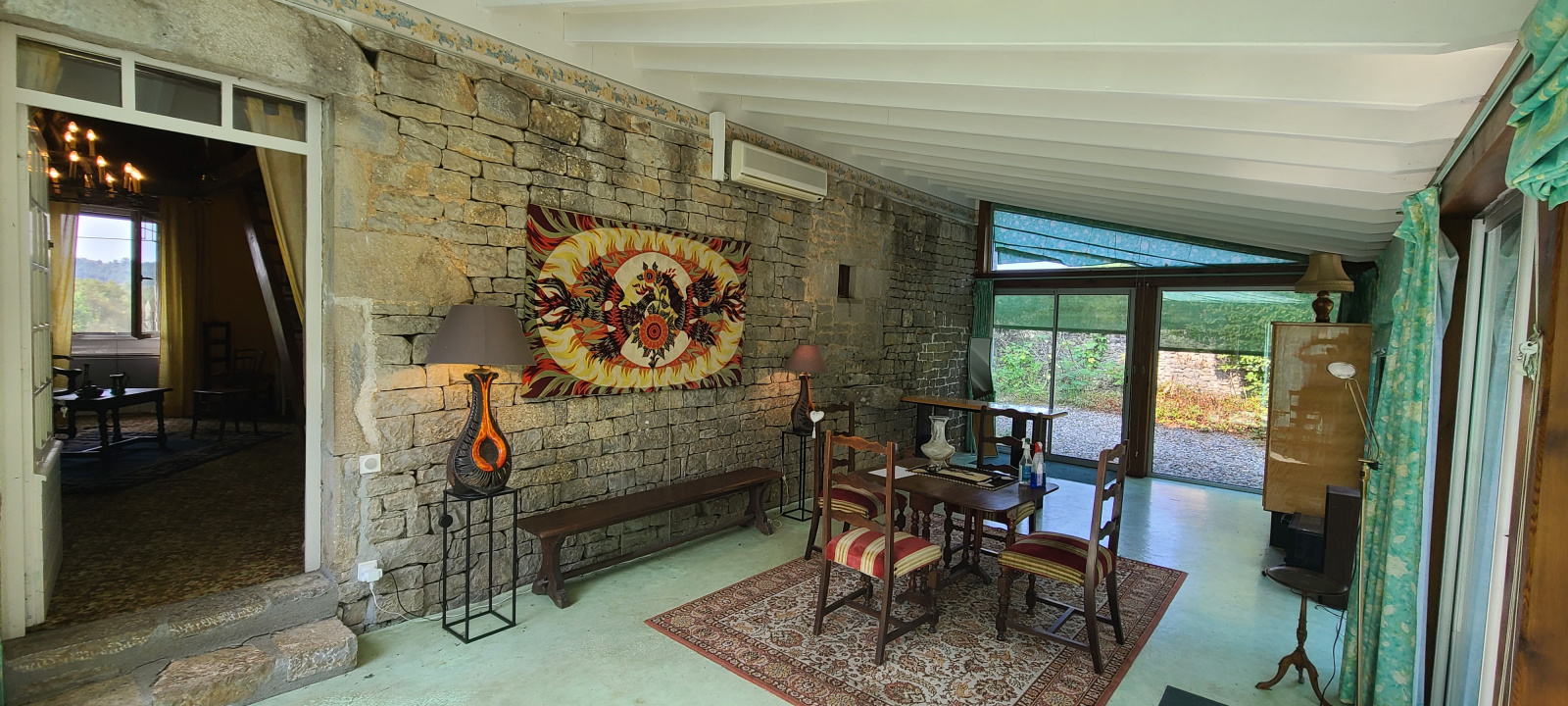 Bénéficiant d'un agréable jardin arboré avec piscine, sans vis-à-vis, charmante maison en pierre typique de la région composée d'un grand séjour avec cantou, cuisine, deux chambres, salle de bains, garage en dépendance avec studio.
