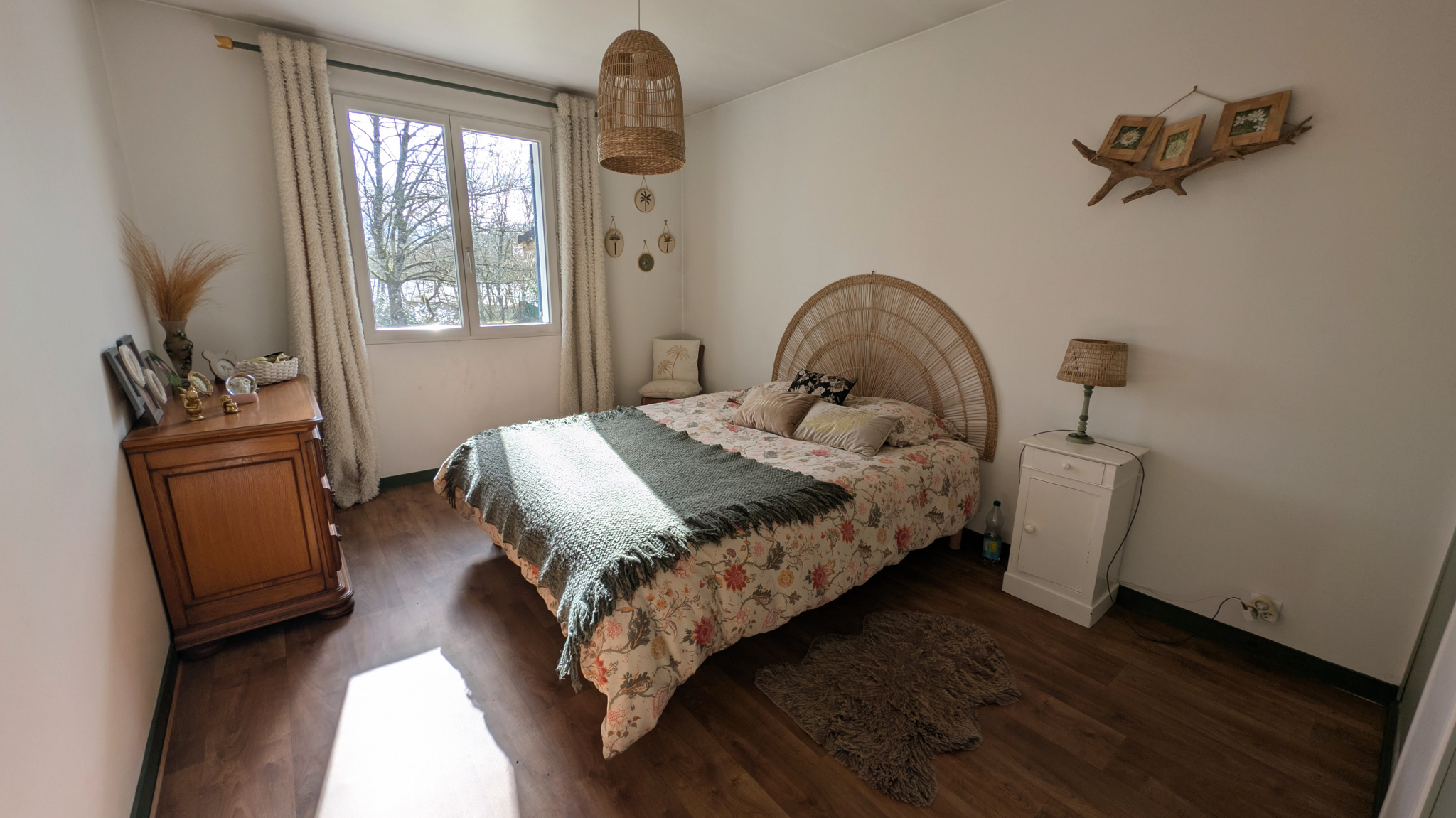 Séjour ouvrant sur la terrasse, deux chambres et salle d’eau avec WC.